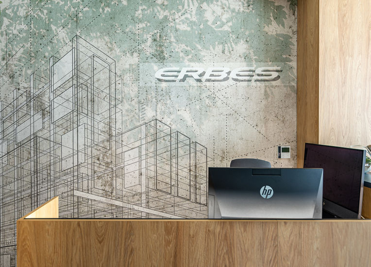 Kancelářské prostory pro společnost Erbes jsme vyprojektovali včetně dispozičních úprav, rozvodů a elektroinstalací. Část navrženého nábytku se řešíla truhlářsky na míru. Zajímavým detailem je řešení kobercových krytin do skladby rybí kosti a také autorské řešení tapet speciálně navržených pro tyto prostory. Tapety vytvořily krásnou atmosféru i v koupelnách.